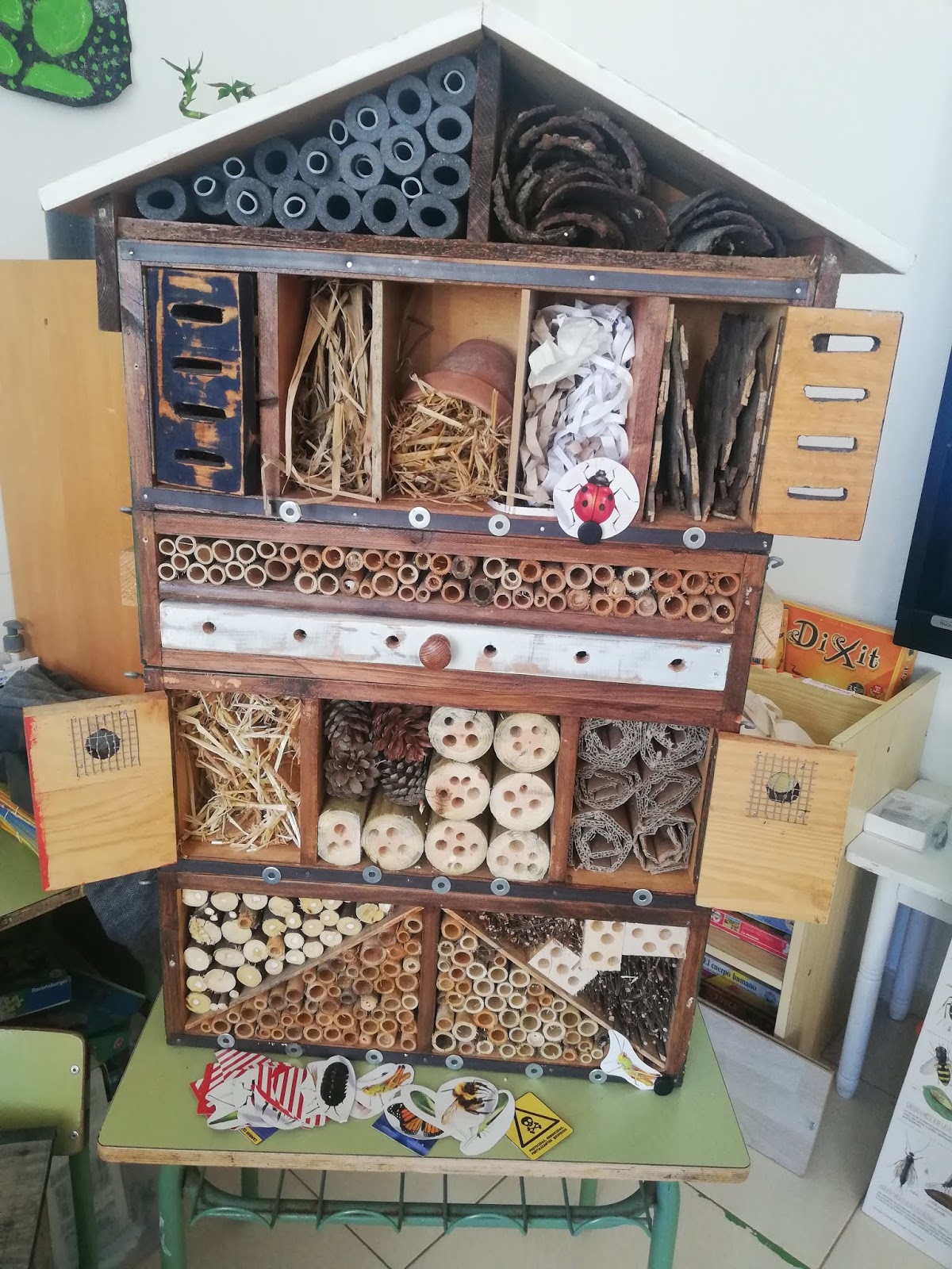Fa poc vam rebre la visita d'un apicultor que ens va ensenyar tot tipus de curiositats sobre els insectes. A més, ens va donar una molt bona idea: Construir el nostre propi Hotel d'insectes! Avam si ho aconseguim!